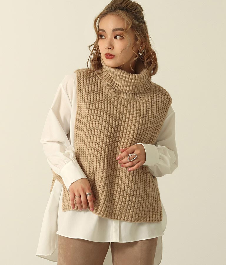 アルパカ混ケーブル編みハイネックニットベスト プチプラレディースファッション 公式 Envylook エンビールック 誰もが羨ましがる私だけのスタイル